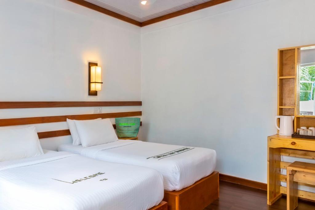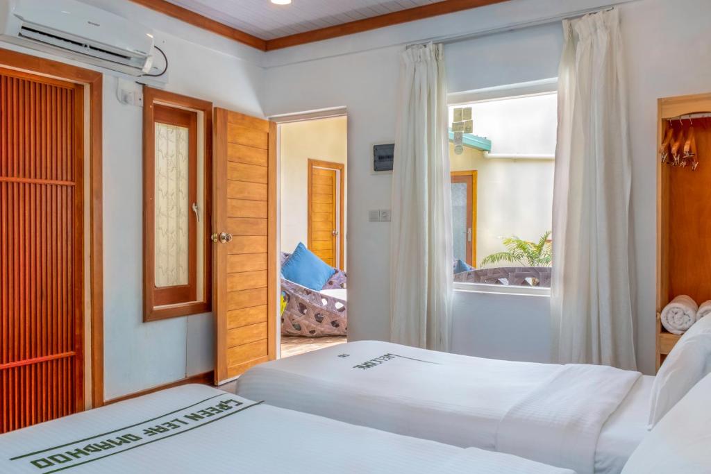 Comfortable Accommodations: Green Leaf Guest House - Omadhoo in Omadhoo offers family rooms with air-conditioning, private bathrooms, and modern amenities. Each room includes a tea...