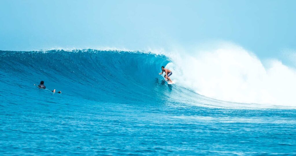 Here, waves like Guru’s offer fast, hollow rides with plenty of power, while Twin Peaks provides both left and right breaks—great if you’re surfing with friends of different skill levels.