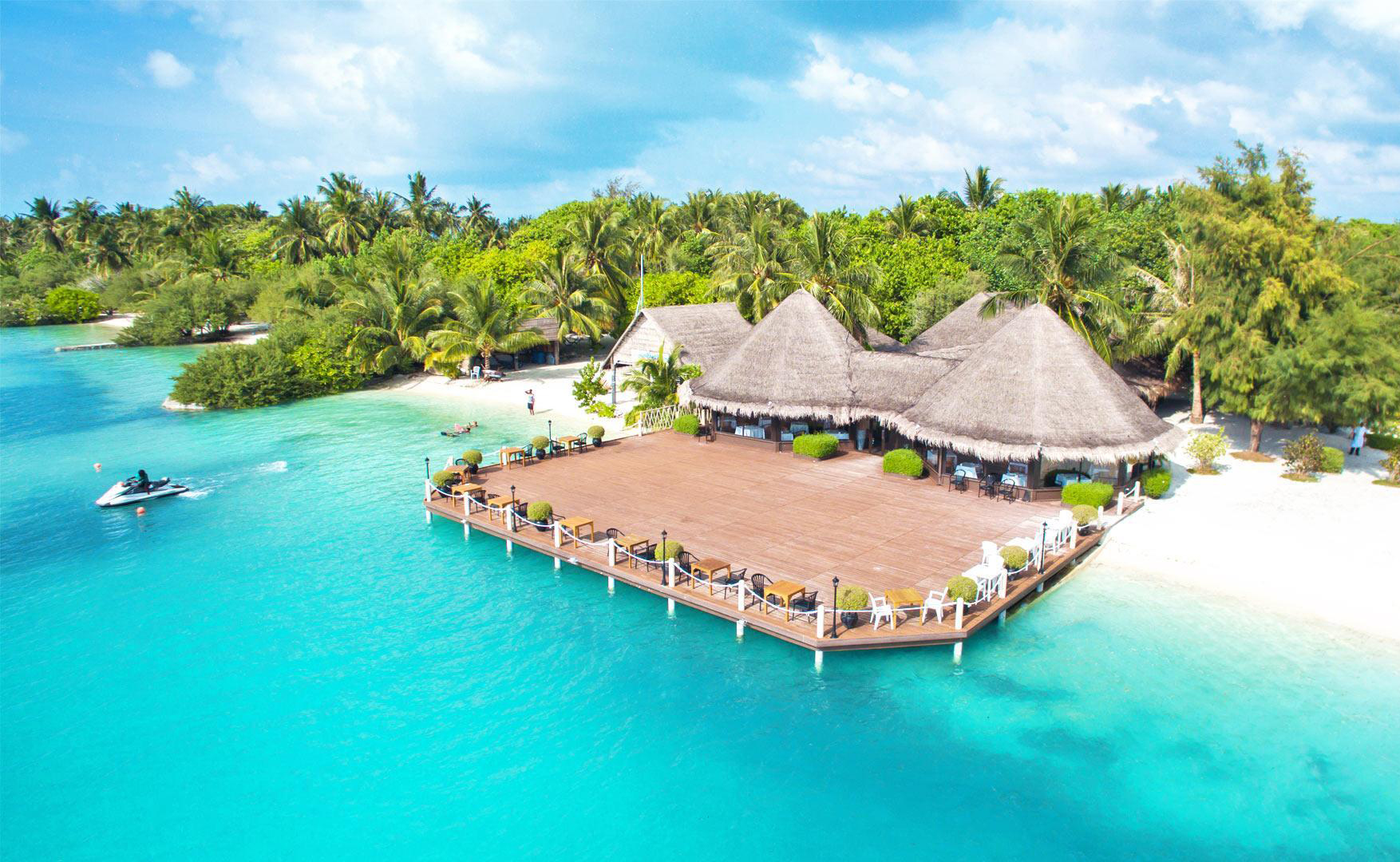 Adaaran Select Hudhuranfushi is conveniently situated in North Male Atoll, just 19 km from Velana International Airport. A speedboat covers this distance in a mere 30 minutes.
